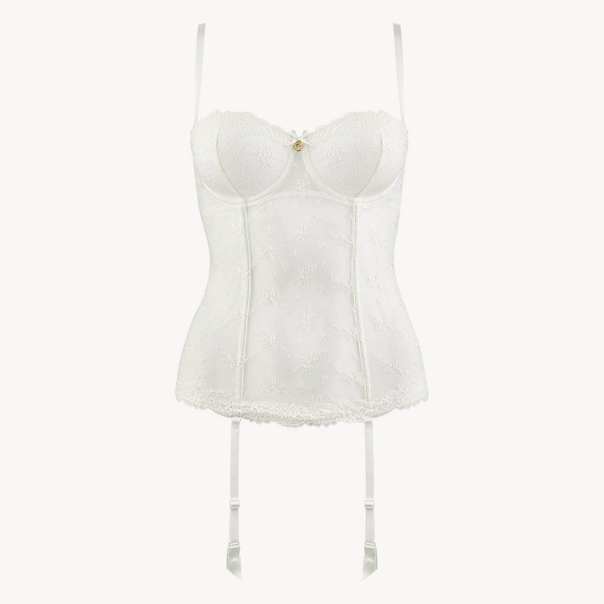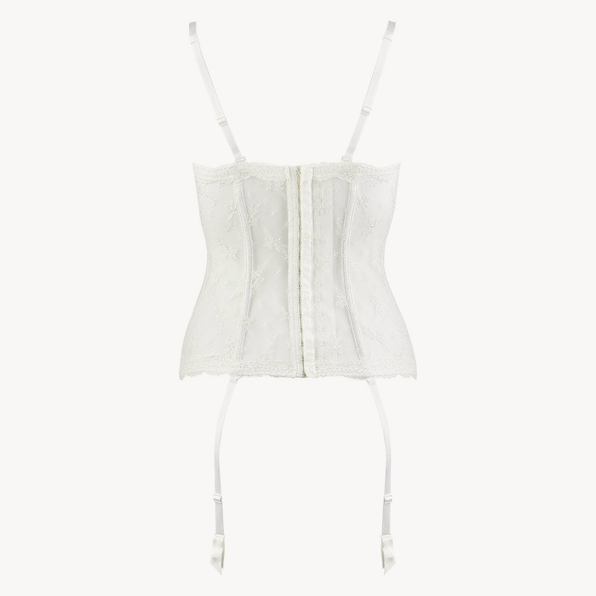 Cupele buretate Balconette se curbeaza si imbunatatesc decolteul, in timp ce curelele si bretelele detasabile il fac foarte versatil. Un model de lenjerie de nunta de cea mai buna calitate.